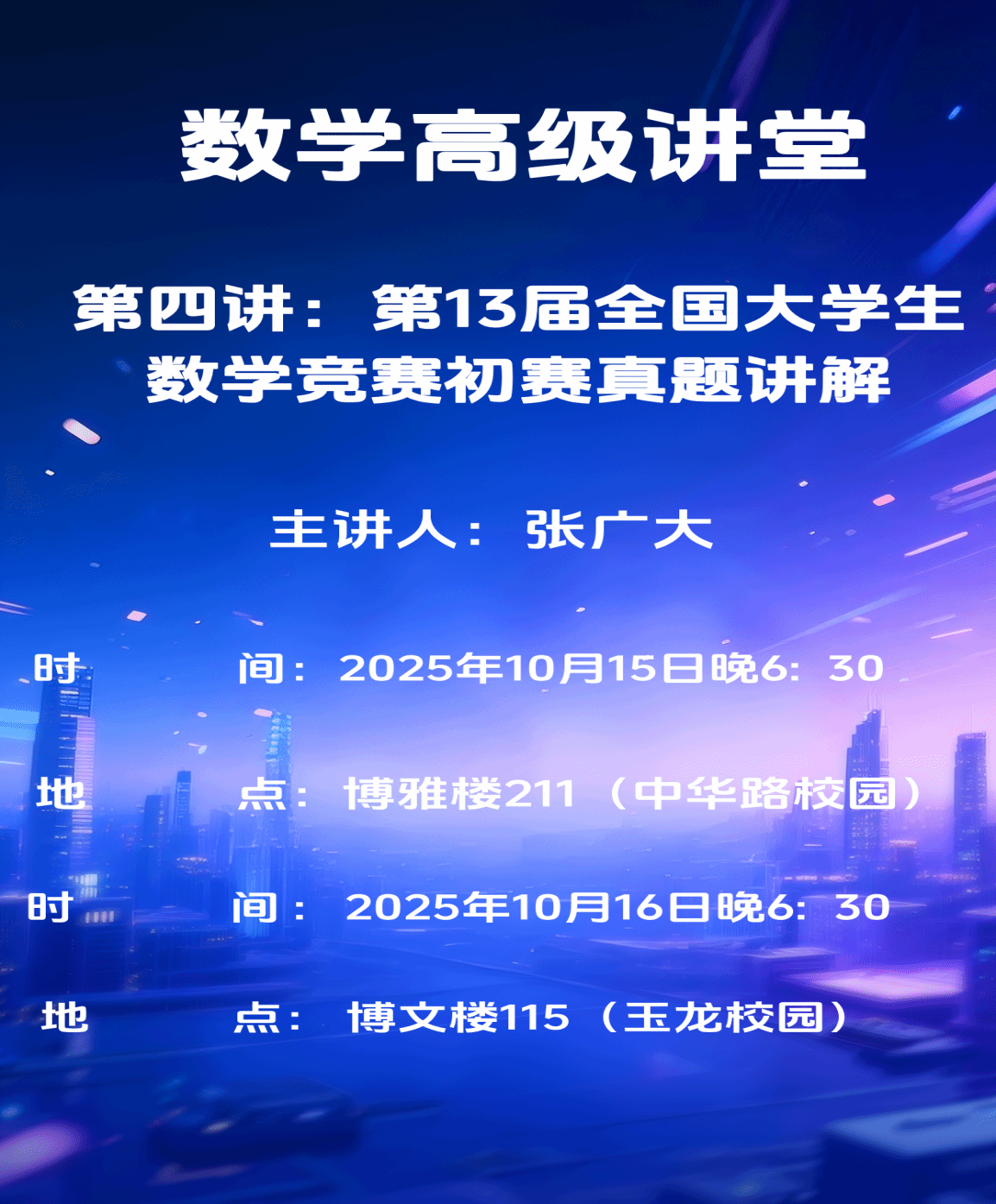 关于开展学业辅导活动 《数学高级讲堂》第四讲的通知