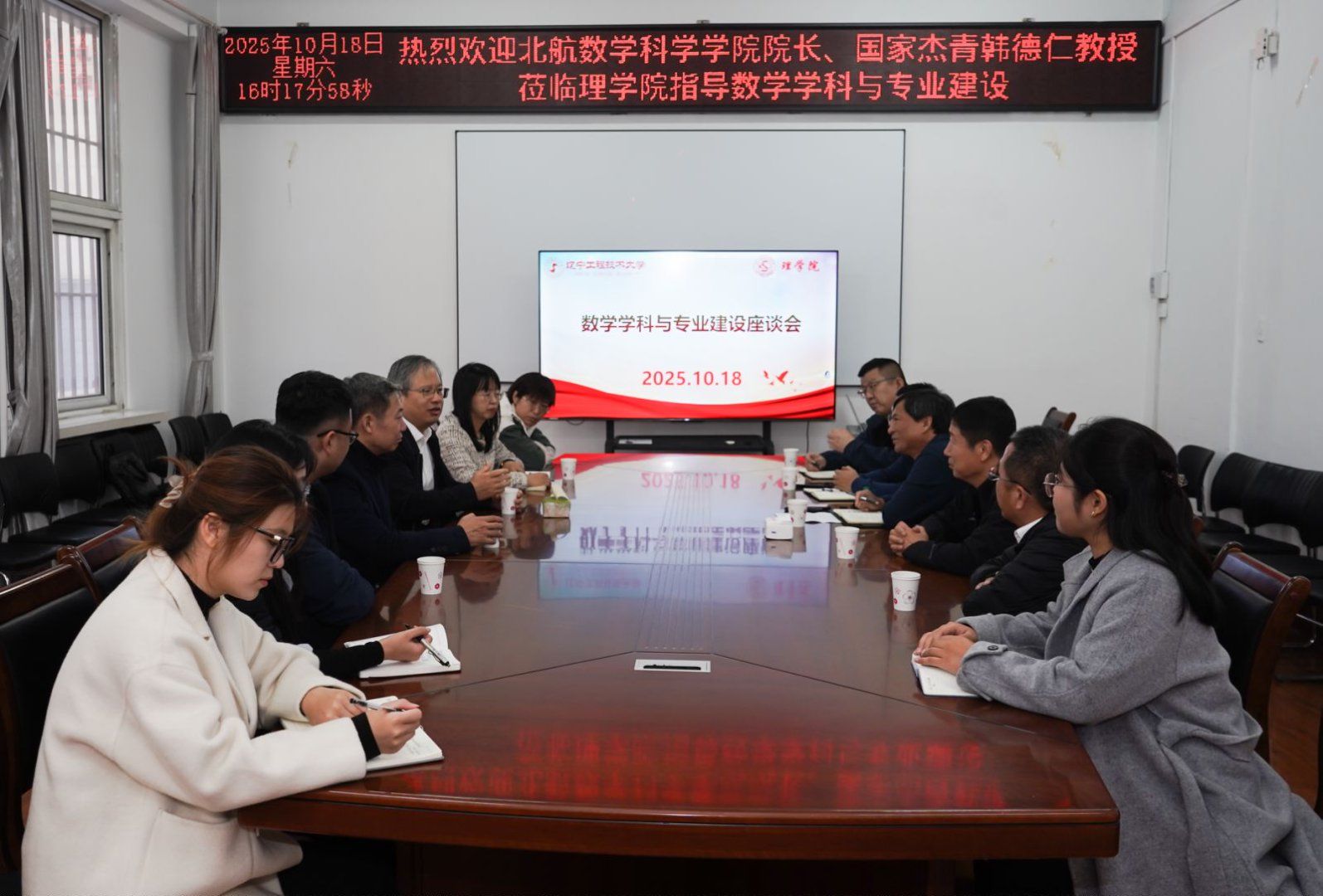 10月18日,北京航空航天大学数学科学学院院长、国家杰出青年基金获得者韩德仁教授受邀到访辽宁工程技术大学理学院,围绕数学学科与专业建设开展专项指导,并为研究生带来一场兼具深度与前沿性的学术报告。