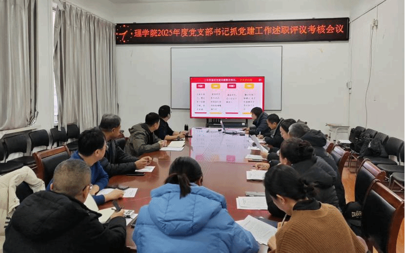 2025年12月24日,理学院2025年度党支部书记抓党建工作述职评议考核会议在中和楼215室举行。理学院党委委员、全体党支部书记、组织员、党员师生代表参加了会议,会议由学院党委书记沈浩主持。